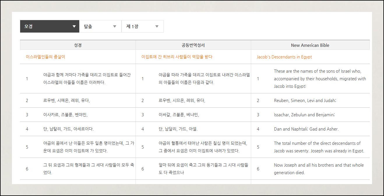 천주교 성경 비교 메뉴는 매우 유익한 기능입니다. 천주교 성서, 성경, NAB 등 다양한 번역본의 동일한 구절을 한 화면에서 쉽게 대조해볼 수 있어요. 궁금한 내용이 있다면 원하는 구절을 선택해보세요.