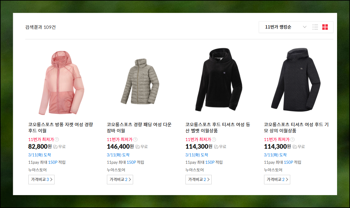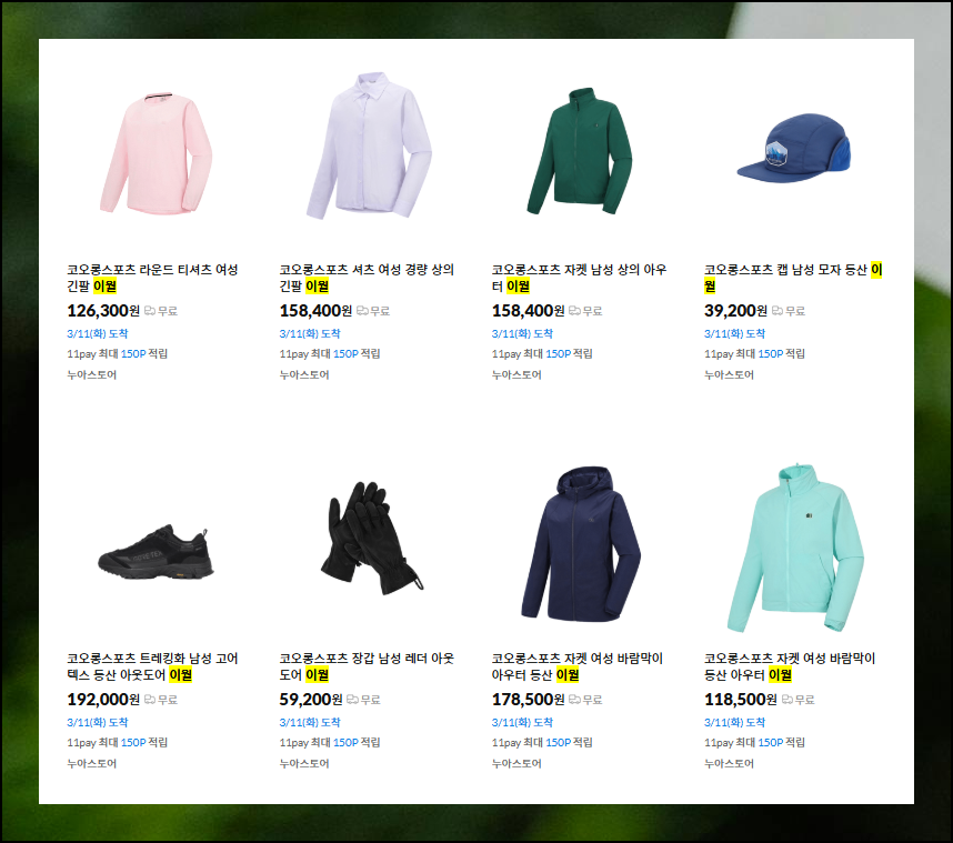 아울렛 방문 없이도 시즌오프 제품을 찾는 더 쉬운 방법이 있습니다. 요즘 같은 날씨에 외출하기 부담스럽다면, 집에서 편안하게 11번가를 통해 코오롱 스포츠 제품을 찾아보실 수 있어요. 여러 아이템을 비교하며 저렴하게 나온 상품을 둘러볼 수 있습니다.