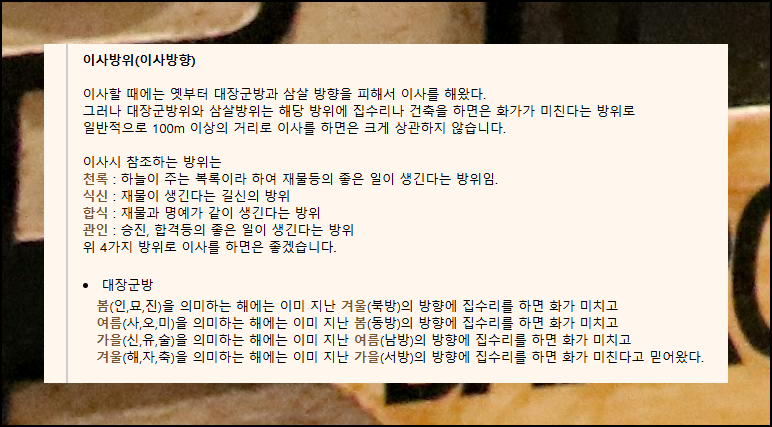 이사하기 좋은 시기와 방향에 대한 것은 쉽게 볼 일이 아니죠. 이러한 부분에 대하여 이사방향 보는법을 통해 좋은 인사이트를 얻어보세요. 긍정적인 에너지가 가득한 새 보금자리를 마련하실 수 있을 겁니다.