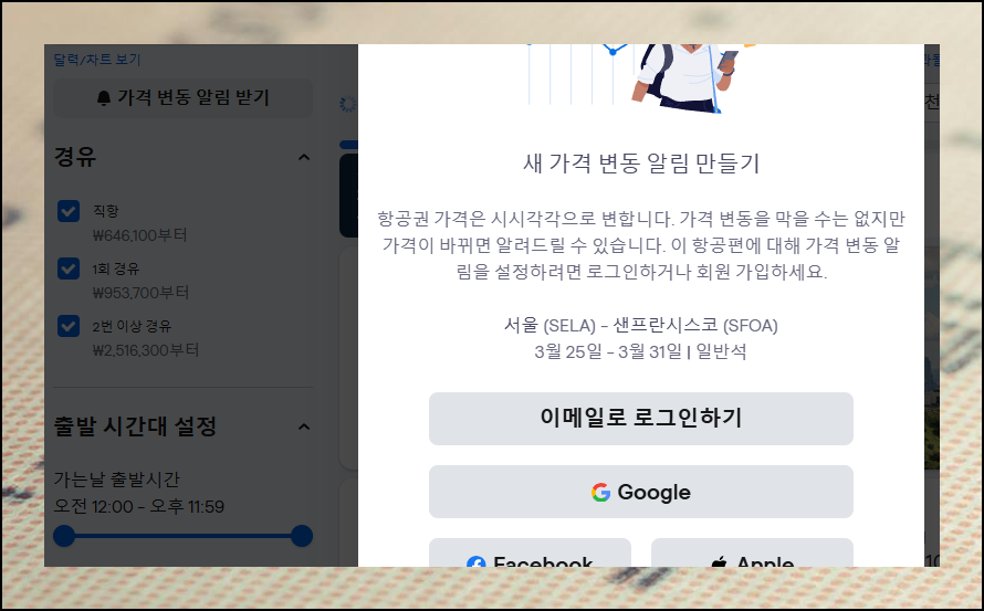 '새 가격 변동 알림 만들기' 기능으로 더 저렴한 항공권이 출시되면 알림을 받을 수 있어요. 미국행 비행기표 운임은 하루 만에도 크게 변동할 수 있어 이러한 기능을 사용하면 좋습니다.