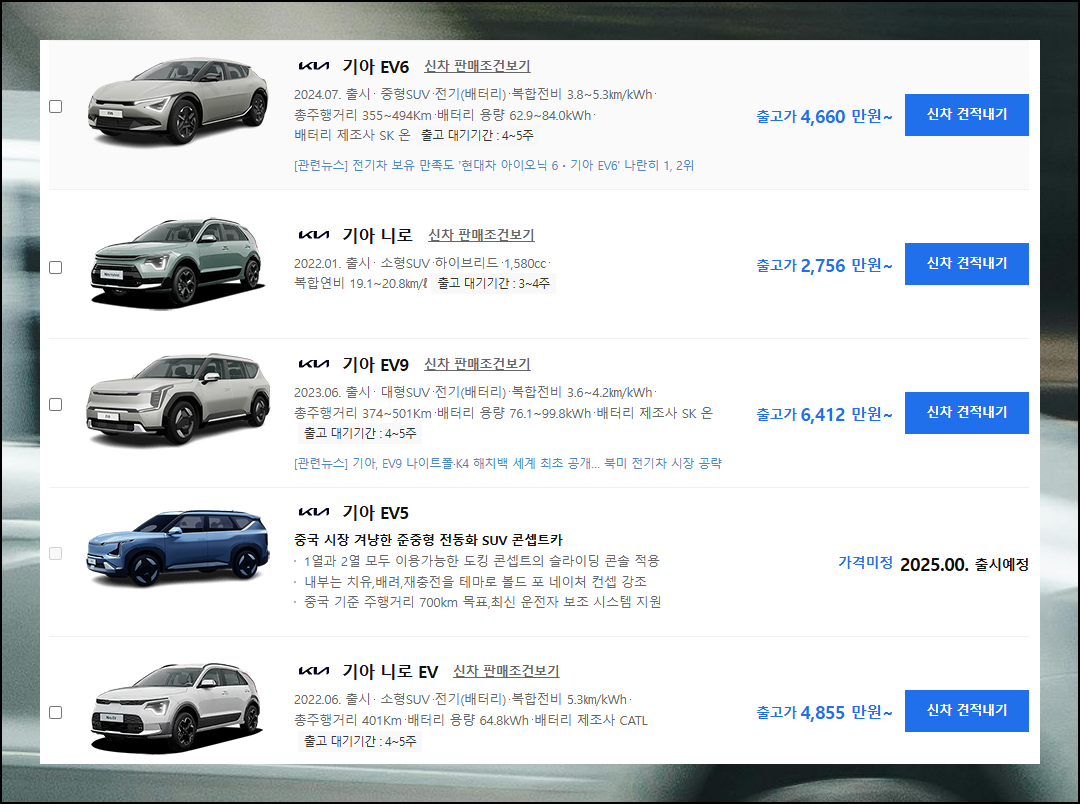 기아자동차 신차가격표 2025년 보기