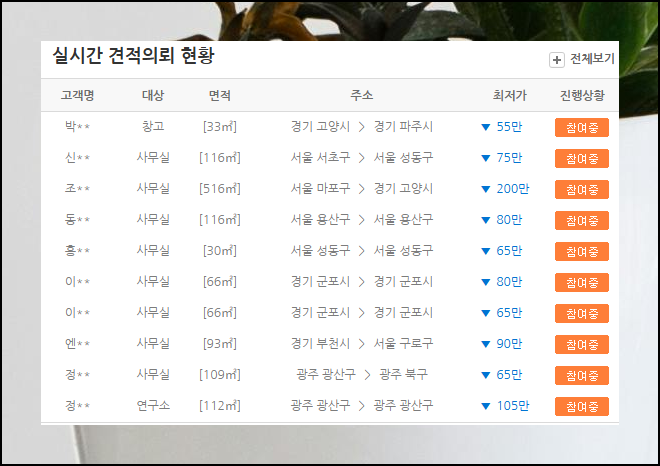 게다가 실시간 견적의뢰 현황을 통해 시장 시세까지 파악할 수 있으니 지금 바로 시작해보세요.