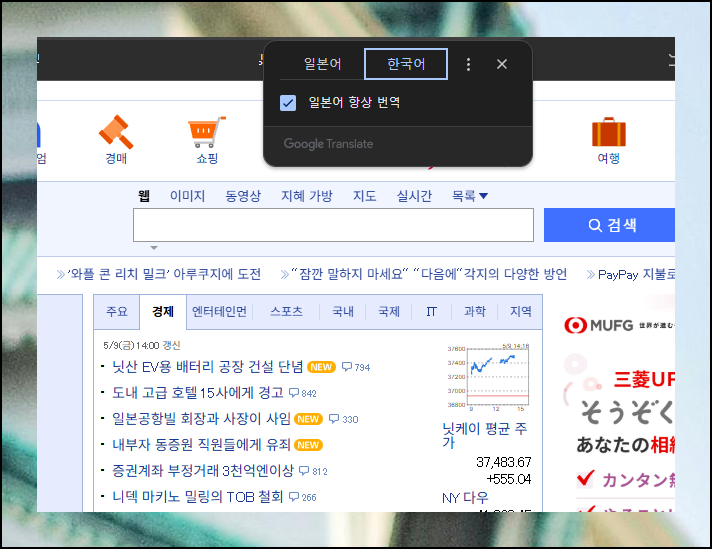잠시 후 한글판 야후재팬 화면이 나타납니다. 일본어가 우리 언어로 변환되어 외국 홈페이지 활용이 훨씬 편리해져요.