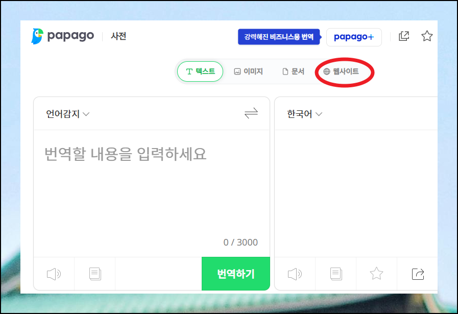 상단 메뉴 네 번째 [웹사이트]를 선택하면 시작됩니다. 문서 번역은 세 번째 [문서] 항목을 클릭하세요. 이렇게 파파고를 통해 일본어를 한국어로 쉽게 변환할 수 있습니다.