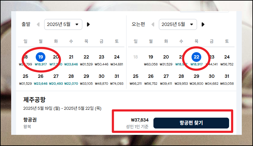제주도를 도착지로 선택한 후, '날짜 조정 가능' 옵션으로 가는 날과 오는 날을 설정하세요. 이렇게 하면 날짜별 예매 요금에 대한 차이를 한눈에 살펴볼 수 있어요. 비행기표는 날짜에 따라 금액이 크게 달라지므로 이 과정이 매우 중요합니다.