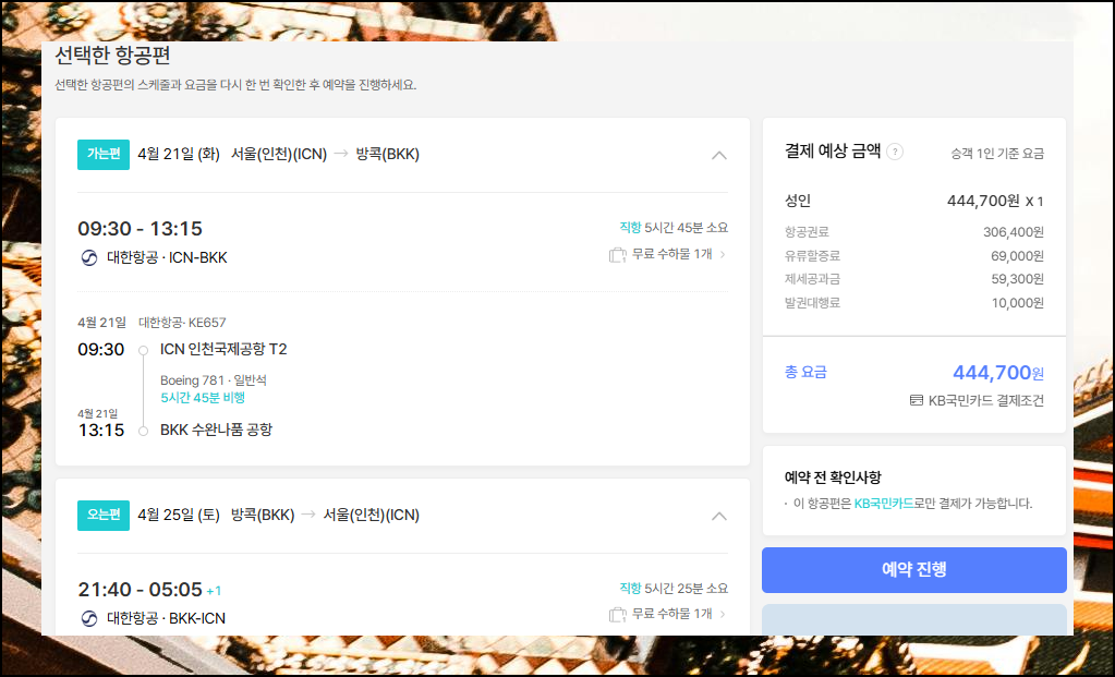 태국 비행시간 정확한 확인 및 최저가 항공권 예약