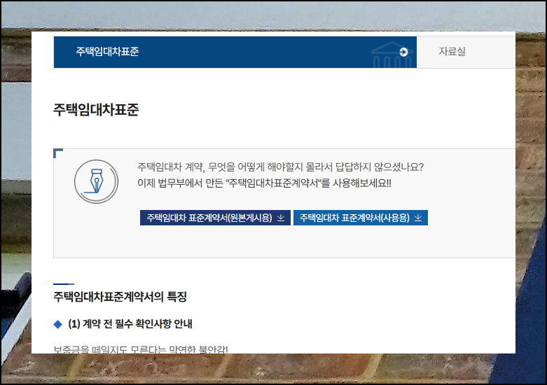 법무부의 공식 홈페이지에 방문해 [법무/검찰] 항목을 클릭하고, [주택임대차법령정보]를 선택하면 됩니다. 그럼 나타나는 최신 규정에 맞는 표준 서식을 통해 나중에 발생할 수 있는 문제를 미리 방지하세요.