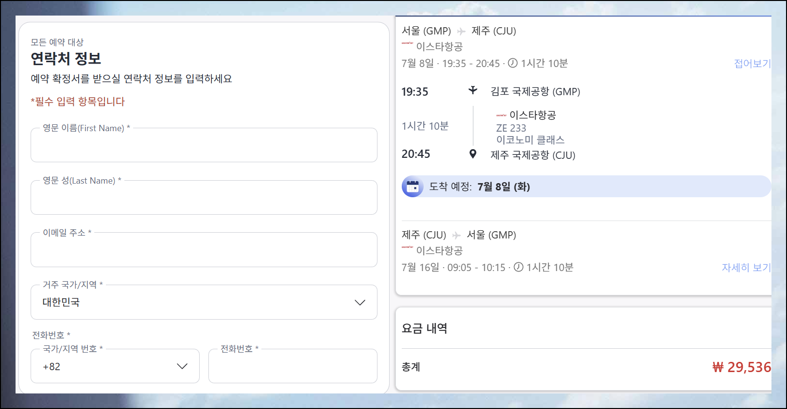 여행을 하다가 골치 아픈 문제가 생기면 여행을 망칠 수 있거든요. 업체 선택 후 항공권 예약 사이트에 접속하면 우리가 찾은 티켓 정보가 맞는지 확인을 해야 합니다. 그 다음 결제까지 진행하면 예약 완료가 돼요.