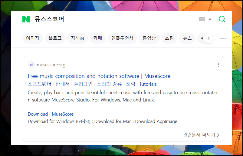 이제 무료로 피아노 악보를 다운로드 받는 사이트를 이용하는 방법을 알려드리겠습니다. 검색창에 '뮤즈스코어'를 입력해서 접속해주세요.