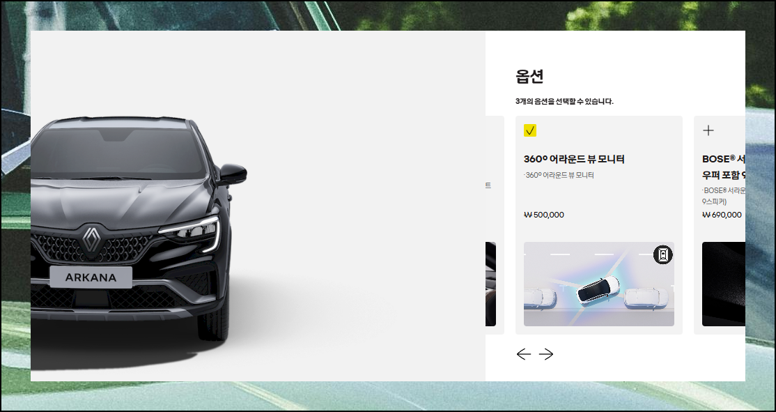 이번 단계에서는 르노삼성자동차 XM3 모델에 장착할 수 있는 다양한 옵션을 살펴볼 수 있는데요. 여기에 나오는 모든 옵션을 전부 선택할 필요는 없어요. 본인의 운전 패턴과 필요에 따라 꼭 필요한 기능들만 골라서 추가하면 됩니다.