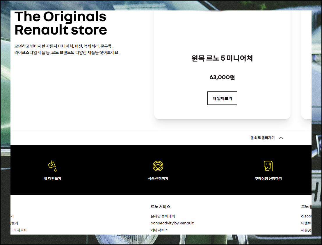 공식 홈페이지 메인 화면에 접속하면 왼쪽 하단에 눈에 띄는 버튼을 발견할 수 있어요. 바로 '내 차 만들기' 메뉴인데요. 이 버튼을 클릭하는 것을 시작으로 진행 과정을 알려드리겠습니다.