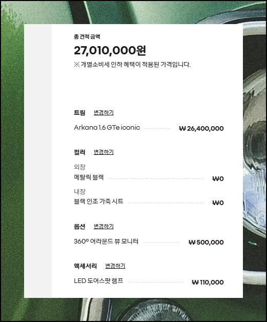 르노삼성자동차 공식 홈페이지에서 제공하는 견적 서비스를 이용하면 되는데요. 생각보다 간단하게 이용할 수 있습니다.