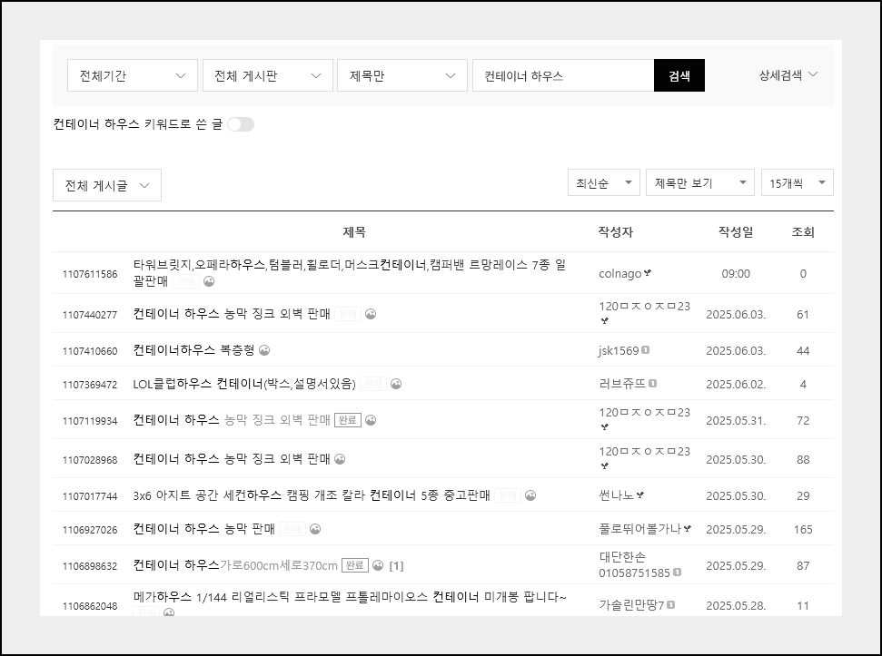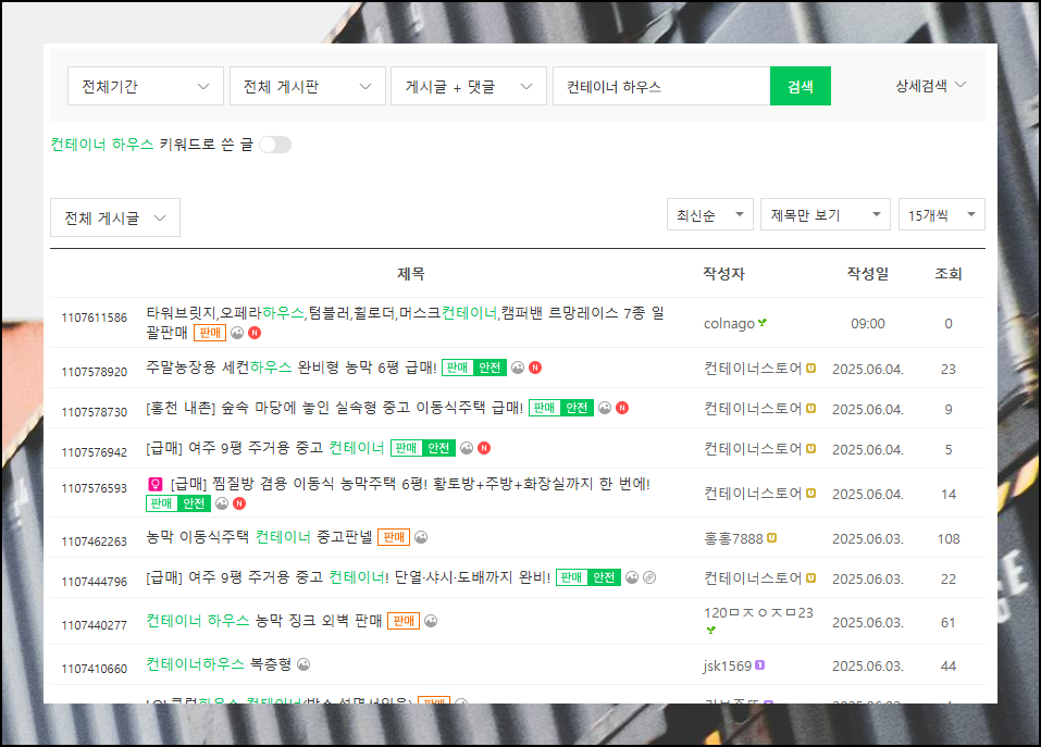다아라 기계장터 상품 수가 아쉽다면 추가 방법이 있어요. 중고나라 플랫폼을 활용해보세요. 컨테이너 하우스로 검색하면 많은 양의 매물을 찾아볼 수 있어요.