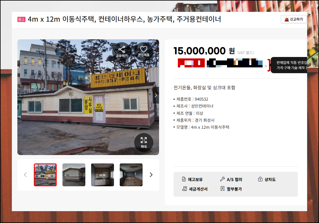 중고 제품을 구매할 때는 반드시 여러 매물을 살펴봐야 해요. 컨테이너 하우스와 같이 가격이 비싼 제품의 경우엔 더욱 신중해야 합니다. 다양한 물건을 접해보면 자연스럽게 시세 파악이 되는데요.
