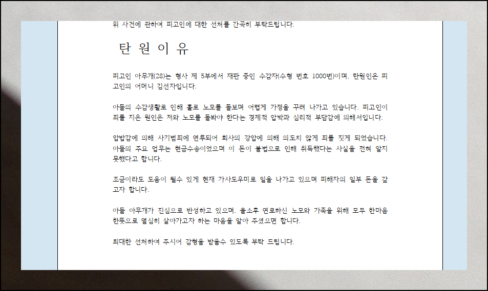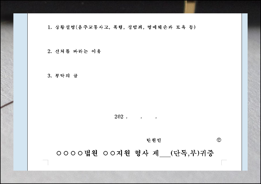 정성스럽게 준비한 탄원서가 원하는 결과를 가져다주기를 진심으로 응원합니다.