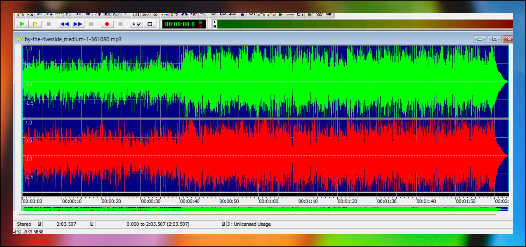 편집하고 싶은 음성 파일을 소프트웨어에 불러와야 해요. 메뉴에서 파일 열기를 선택하거나 파일을 직접 끌어다 놓으면 됩니다. 대부분의 음성 파일 형식을 지원하니 걱정 마세요. 파일 로드가 완료되면 파형 모양이 화면에 표시됩니다.