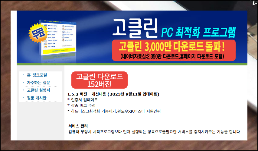 고클린의 현재 최신 버전은 152 버전입니다. 고베스트 웹사이트에 접속하시면 다운로드 뿐만 아니라 상세한 사용 매뉴얼, 사용자 질의응답 게시판, 자주 묻는 질문 코너 등 다양한 지원 서비스도 함께 제공하고 있으니 고클린 이용 하는법에 대해 궁금할 때 적극 활용해보시기 바랍니다.