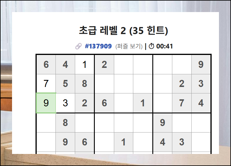 사이트 접속하면 메인 화면에 9x9 크기의 퍼즐이 바로 보입니다. 즉시 게임을 시작할 수 있도록 준비되어 있어요. 해결 방법은 정말 간단합니다. 빈 칸을 마우스로 클릭하면 숫자 입력이 가능해져요. 스도쿠 규칙에 따라 올바른 답을 넣으면 됩니다.