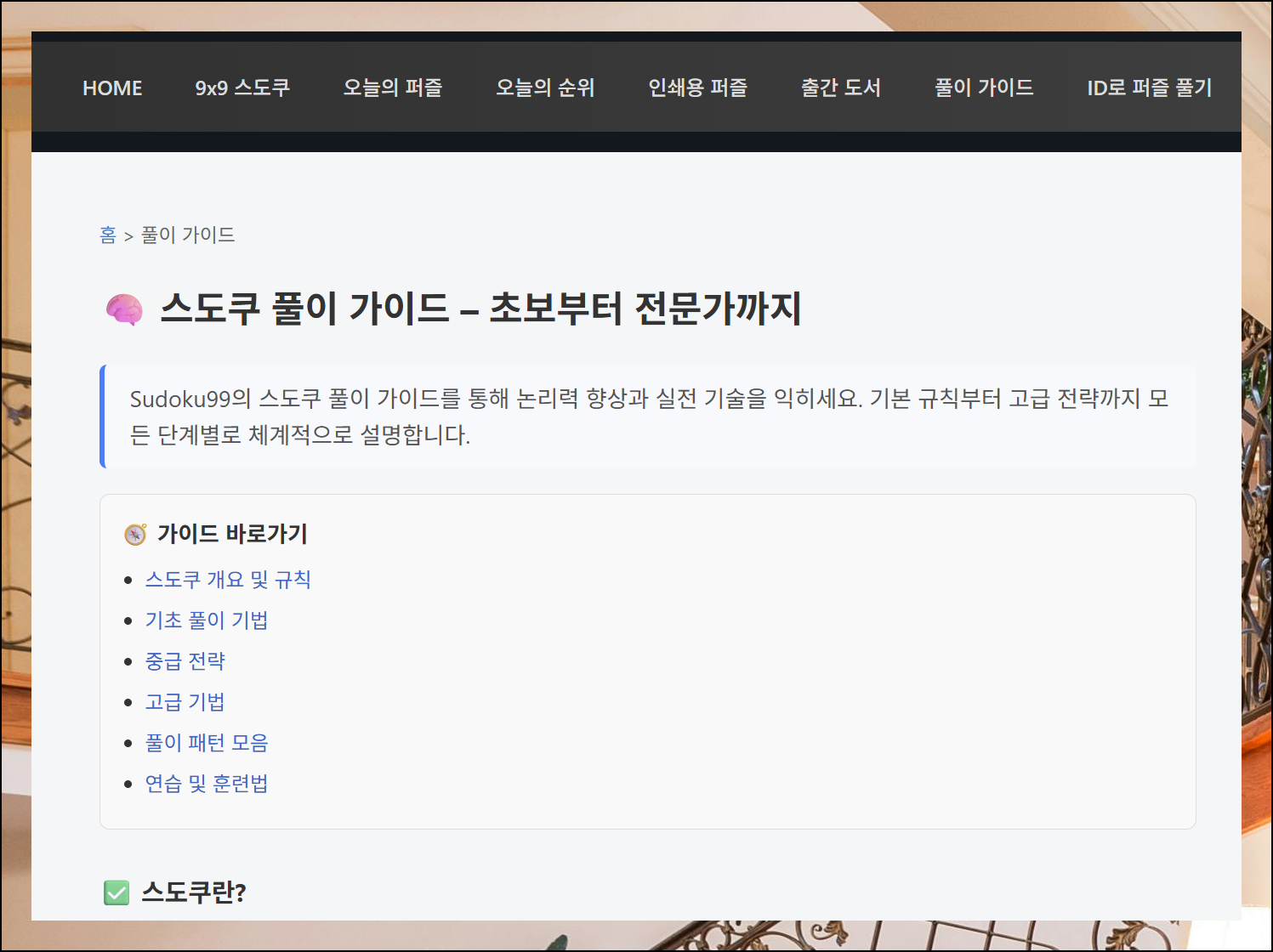 많은 분들이 스도쿠를 즐기고 싶어하지만, 어디서 다양한 난이도의 문제를 찾아야 할지 모를 수 있는데요. 이럴 때 온라인 스도쿠 문제모음 사이트를 활용하면 이런 고민을 한 번에 해결할 수 있습니다.