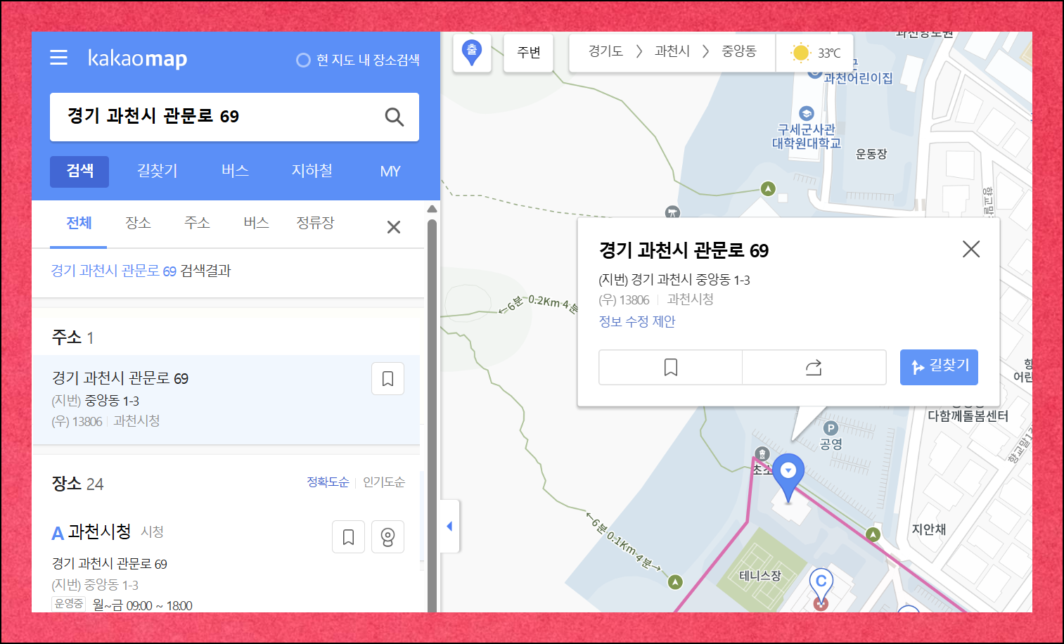 검색창 아래 부분을 보면 해당 주소에 있는 다양한 가게, 기관, 장소에 대한 정보가 목록으로 나열되어 있어요. 여기서 찾고 있던 곳을 클릭하면 전화번호를 바로 확인할 수 있습니다. 카카오맵은 컴퓨터 웹사이트로도 이용할 수 있고, 스마트폰 앱으로도 동일한 서비스를 이용할 수 있어요.