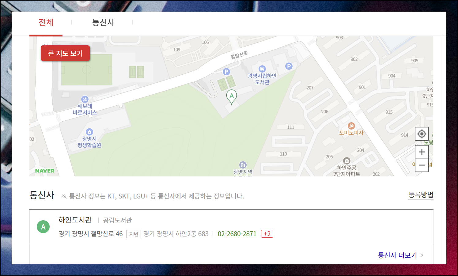 검색을 실행하면 원하는 정보가 화면에 깔끔하게 정리되어 나타납니다. 해당 장소에 위치한 기관이나 가게의 정확한 이름을 확인할 수 있어요. 지번 주소와 전화번호도 함께 표시되니까 한 번에 필요한 모든 정보를 얻을 수 있죠.