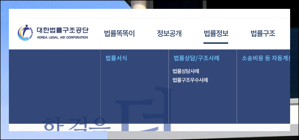 대부분의 사람들이 평소에는 잘 방문하지 않는 곳이지만, 중요한 계약서 체결 시점에는 없어서는 안 될 필수 사이트예요. 홈페이지 상단의 메인 메뉴에서 법률 정보를 찾아 클릭하면 하위 메뉴가 펼쳐지는데요. 여기서 법률서식을 선택하시면 됩니다. 이 간단한 단계만 거치면 검증된 부동산 매매문서 라이브러리에 바로 접근할 수 있어요.