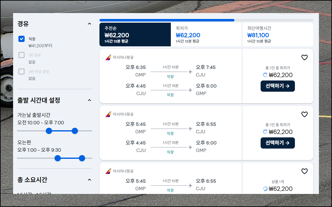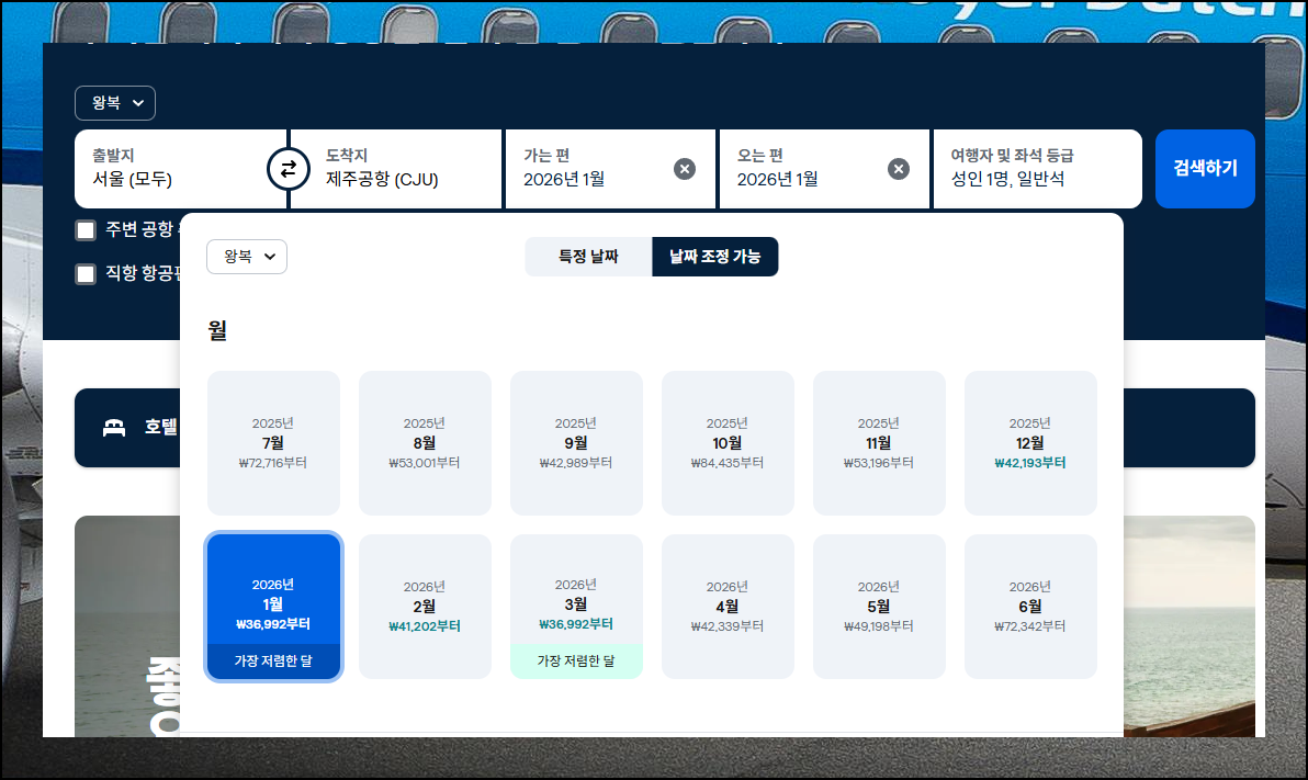 적당한 여행 시간으로 바꿔서 다시 검색해볼까요. 시스템이 자동으로 제주항공권 땡처리 상품을 찾아주는데, 인기 있는 시간대는 요금이 조금 더 비쌀 수 있어요. 참을성 있게 기다리다 보면 놀라운 가격의 티켓을 만나게 될 거예요.
