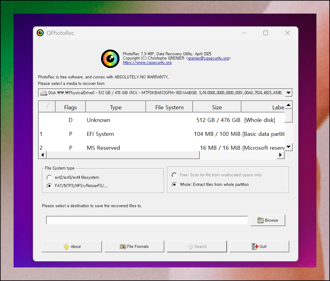 저는 PhotoRec이라는 프로그램을 사용해요. 이름만 보면 사진 전용 복구 도구라고 오해하기 쉬운데요. 실제로는 스마트폰에 저장된 다양한 파일 형식을 모두 복원할 수 있어요. 사진뿐만 아니라 동영상, 문서, 음악 파일까지 거의 모든 데이터를 되살려낼 수 있습니다.