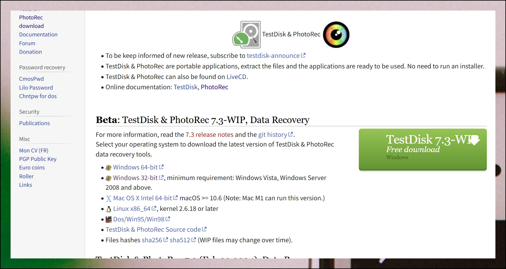 공식 사이트의 다운로드 메뉴를 확인하면 PhotoRec이 따로 없어서 당황하실 거예요. TestDisk 7.3을 받으시면 그 안에 해당 프로그램이 포함되어 있어요. 압축을 푼 후 QphotoRec_win 파일을 실행하면 됩니다. 이 버전은 그래픽 화면으로 되어 있어서 복잡한 명령어 없이도 쉽게 사용할 수 있어요.