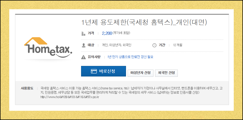 세금 관련 업무만 필요하시다면 더 저렴한 대안이 있습니다. 국세청 전용의 경우에는 2200원으로 범용의 절반 가격이에요. 홈택스를 통한 세금 신고나 조회 업무만 처리하신다면 이것만으로도 충분한 기능을 제공받을 수 있습니다.