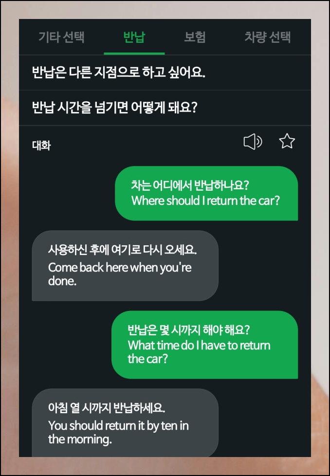화면 우측 상단을 살펴보면 언어 선택 옵션이 준비되어 있습니다. 영어는 물론이고, 일본어와 중국어까지 지원하고 있어서 아시아 여행을 계획하는 분들에게 특히 유용해요. 해외여행을 하는 중 교통 수단을 이용하는 일이 많습니다. 이런 경우를 대비한 다양한 흥정 영어회화 표현들이 미리 준비되어 있으니 적극적으로 활용해보세요.