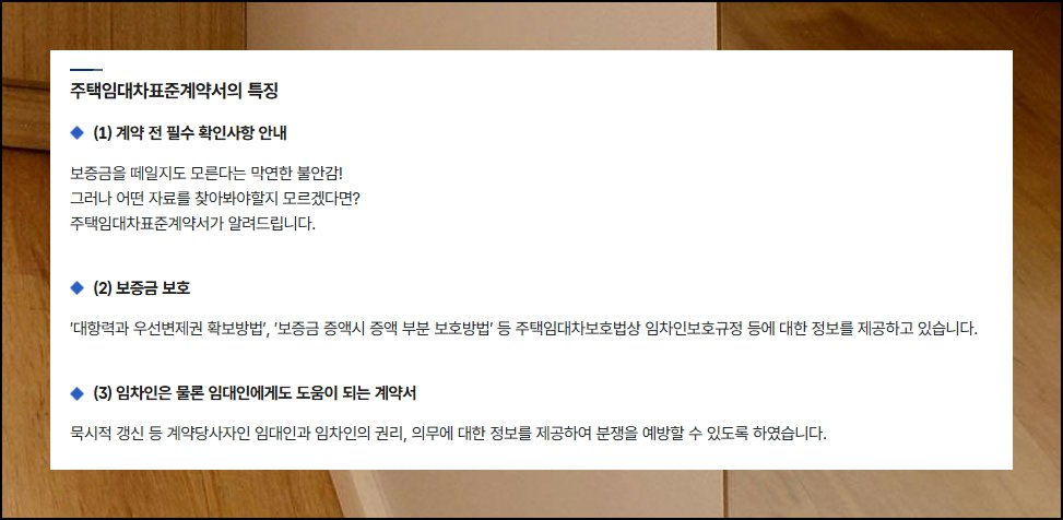 홈페이지 상단에서 주택임대차표준계약서 섹션을 통해 아파트 전세 관련 양식에 접근할 수 있어요. 이 파일은 HWP 확장자로 제공이 되는데요. 임차인이 알아야 할 권리와 보호받을 수 있는 혜택에 대한 상세한 정보를 담고 있습니다. 전세 계약을 진행할 때 이 공인된 서식을 활용하면 보증금 반환이나 우선변제권 행사 등에서 법적 보호를 확실하게 받을 수 있어요.