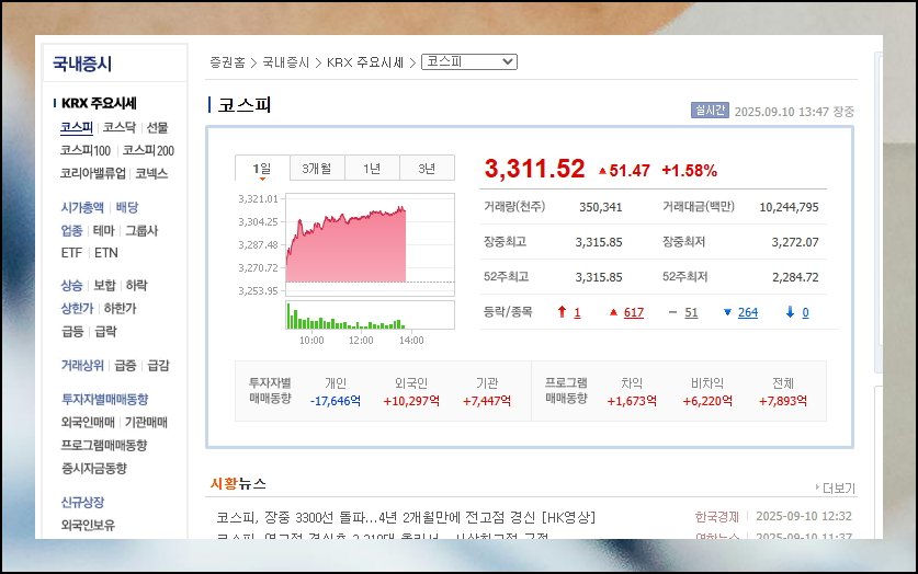 웹사이트에 들어가시면 당일의 핵심 뉴스와 증시 관련 소식들을 먼저 확인해보세요. 코스피와 코스닥 지수를 통해서 오늘의 전체적인 시장 분위기를 알 수 있습니다. 최근에는 이런 동조화 현상이 더욱 뚜렷해진 것 같아요.