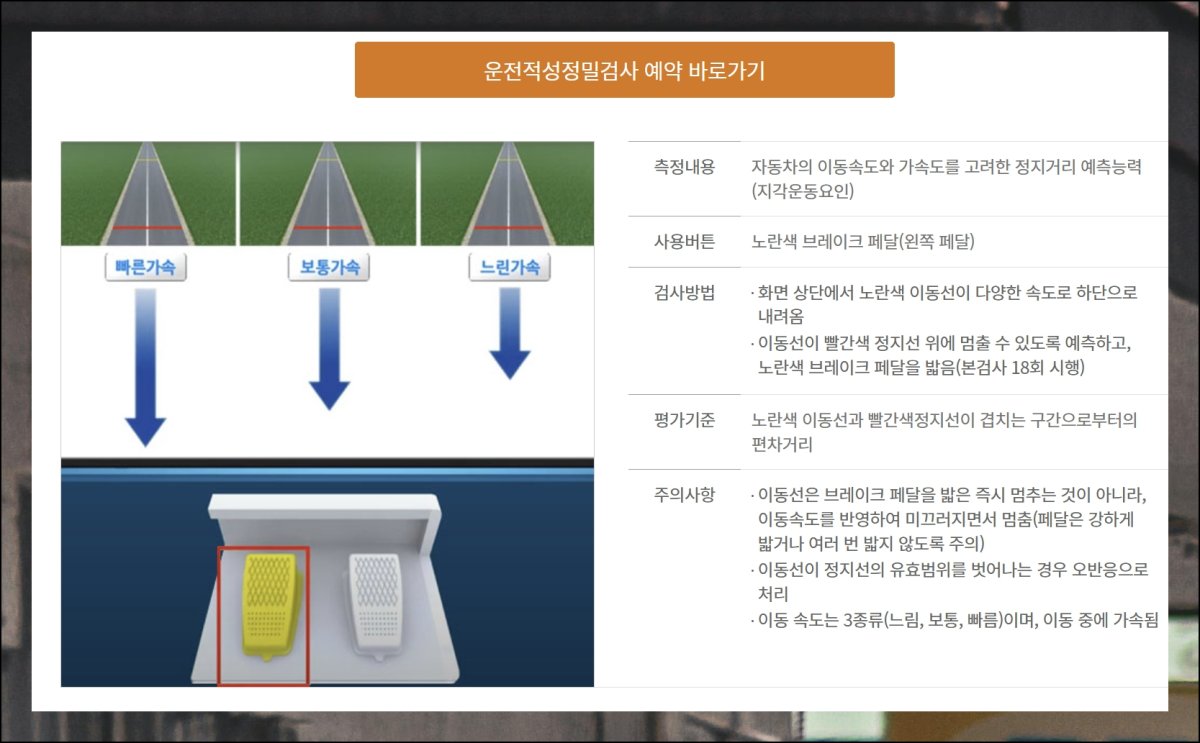 운전적성 및 행동 패턴, 상광지각 능력, 위험상황 판단력 등도 평가 대상에 포함되니까요.