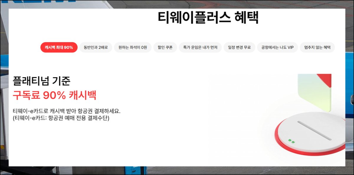 "티웨이플러스"라는 이름이 생소하게 느껴질 수 있는데요. 최근 온라인 쇼핑에서 흔히 볼 수 있는 멤버십 제도와 비슷합니다. 항공사도 이제 구독 서비스를 운영하기 시작했어요. 이 멤버십에서 주는 티웨이-E카드는 마일리지와 같은 개념입니다. 적립을 해서서 서비스 이용이나 비행기 티켓을 결제할 때 실제 돈처럼 활용할 수 있거든요.