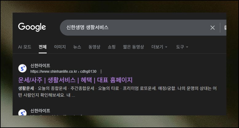신한생명에서 운세를 무료로 확인하려면 공식 홈페이지를 방문하면 됩니다. 구글 검색창에 "신한생명 생활서비스"를 입력해보세요. 검색 결과에서 공식 사이트를 클릭한 뒤 생활 서비스 메뉴를 찾으면 돼요. 그 안에서 역술 카테고리를 선택하시면 됩니다. 복잡한 절차 없이 몇 번의 클릭으로 바로 이용할 수 있어요.