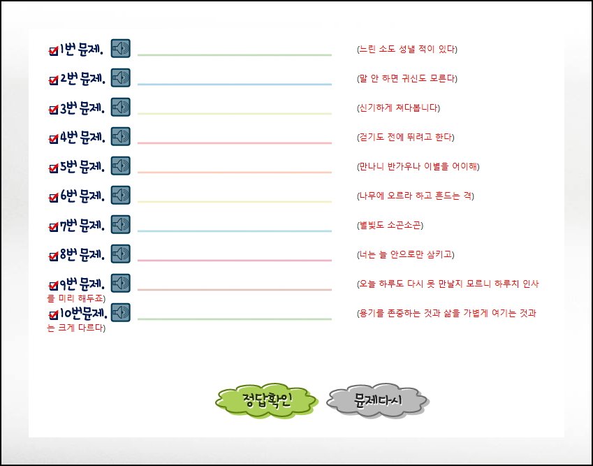 타닥타닥에는 한국어 음성을 듣고 그걸 입력하는 기능도 있어요. 이건 필수는 아닙니다. 관심 있는 분들만 골라서 활용하면 돼요. 듣기 능력과 타자 능력을 동시에 키우고 싶은 분들에게 유용한 기능이죠.