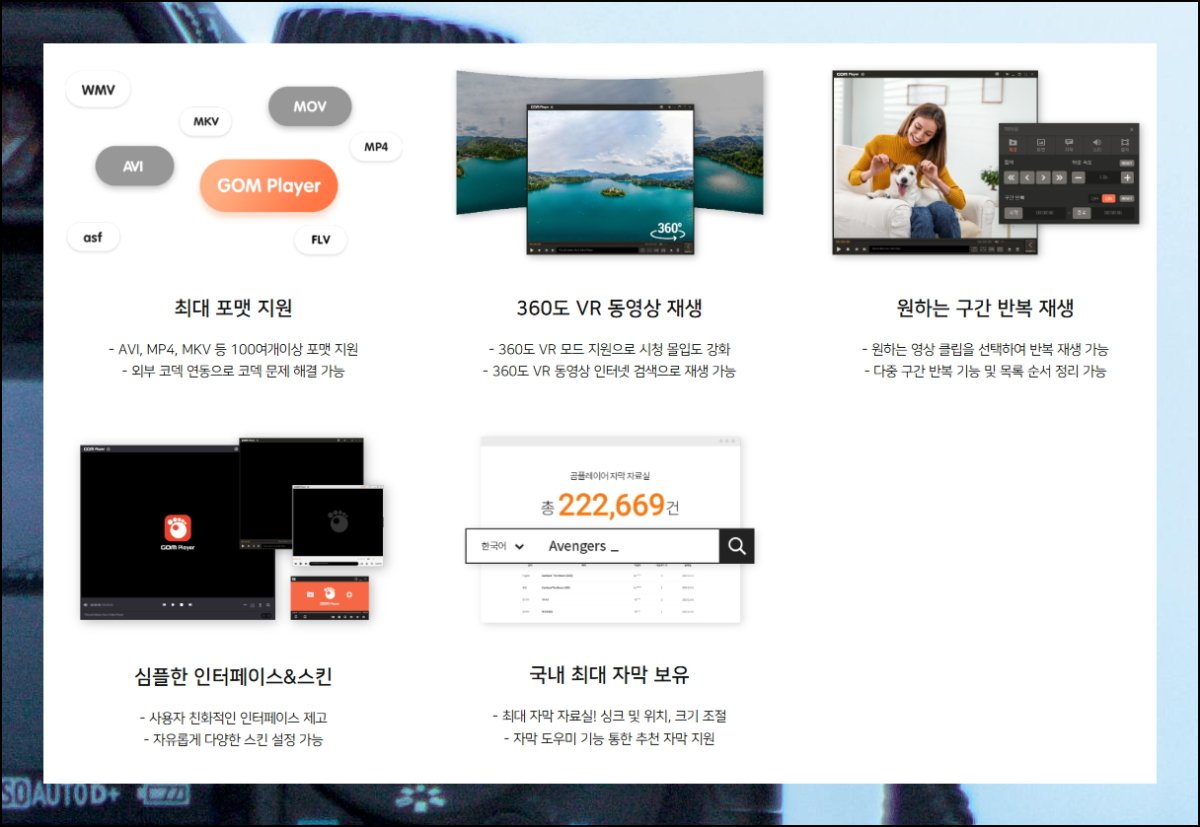 여러 종류의 영상 파일을 재생할 수 있고, 필요한 코덱은 알아서 찾아주는 기능이 있어요. 곰플레이어는 파일이 깨졌거나 다운로드가 완료되지 않은 상태에서도 실행됩니다. 외국 영화를 볼 때 자막을 자동으로 검색해주는 똑똑한 기능 덕분에 해외 콘텐츠 감상이 정말 편해요.